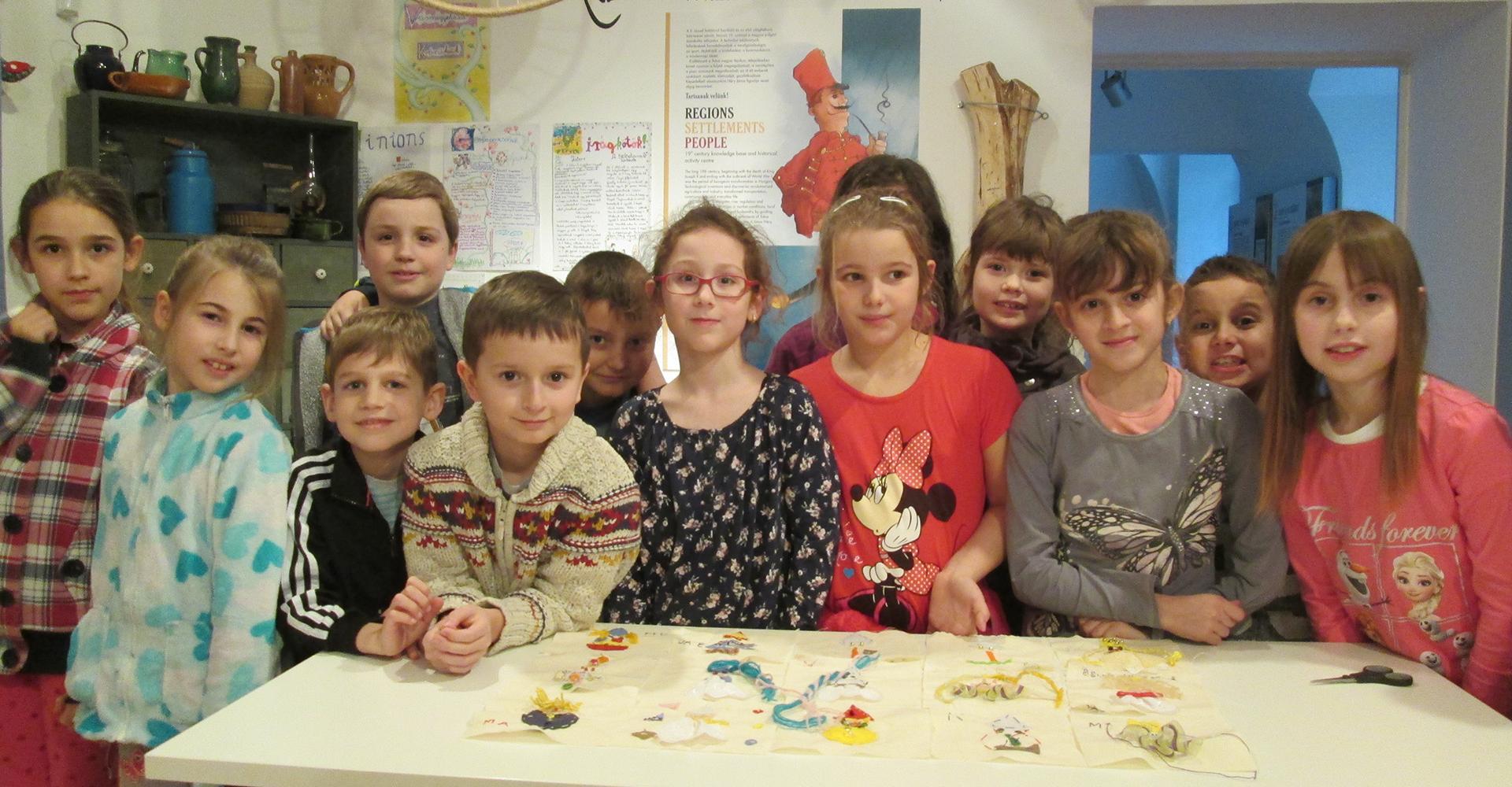 Februári Varródoboz: farsangi falvédő varrása. A Dienes Valéria Általános Iskola tanulóinak jól sikerült munkája.
