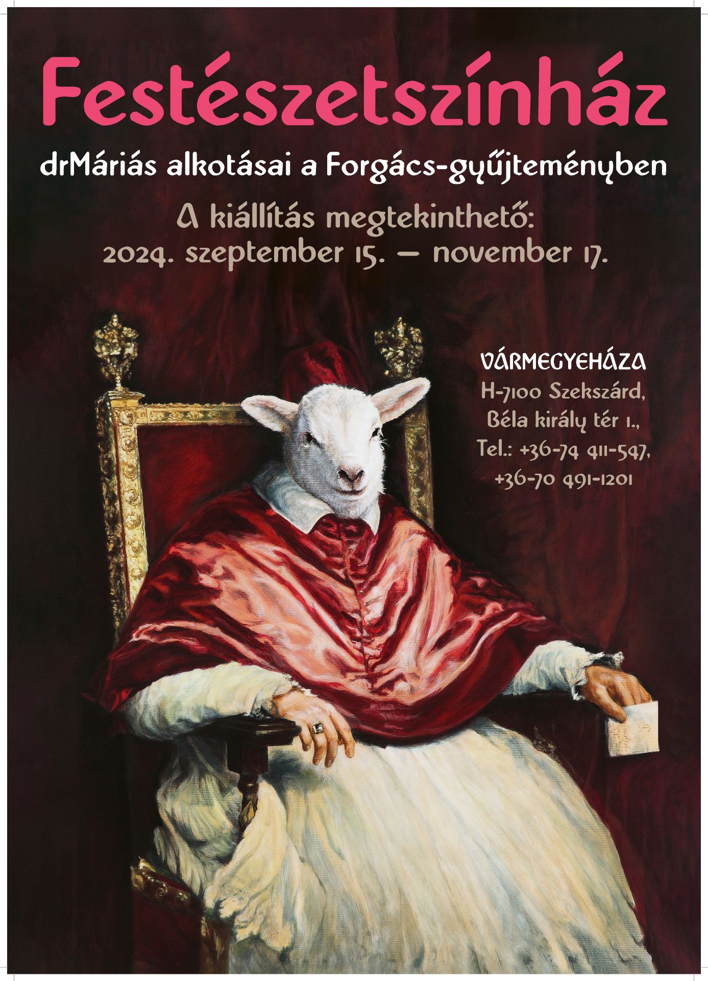 Festészetszínház – a drMáriás alkotásai a Forgács-gyűjteményben című kiállítás megnyitója Tudósok koncerttel, albumbemutatóval, felolvasással, borkóstolóval és gasztronómiai meglepetésekkel Szekszárdon, a Vármegyeházán.