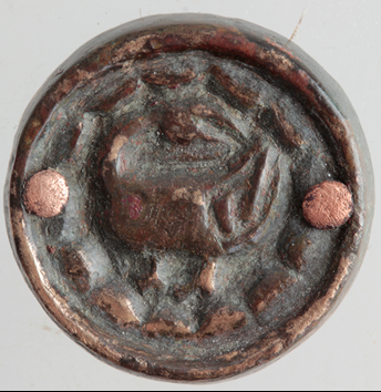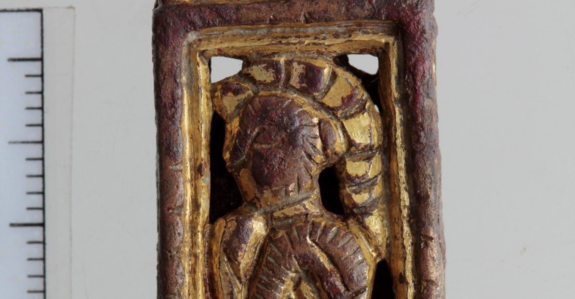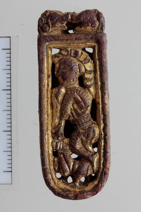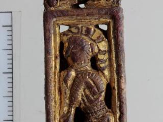 A készlet két darabja, a propellerveret és az egyik kisszíjvég is aranyozott volt. A propellerveret teljes külső oldalán jól megmaradt az aranyozás (néhány helyen, a hátlapján is látszik az átfolyás). Az emberalakos kisszíjvégnek mindkét oldala aranyozva volt, de itt több helyen kikezdte az idő vasfoga a bevonatot.