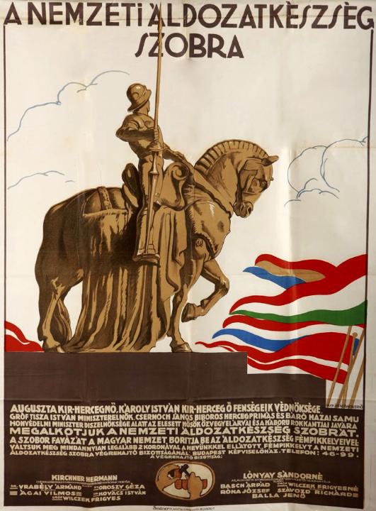 A magyar kormány 1915 elején határozott arról, hogy Budapest egyik forgalmas közterén a Hadsegélyező Hivatal állítson fel egy fából készült Mátyás-korabeli lovas szobrot, „s a nagyközönsség hazafias áldozatkészségére bízassék amaz eszme megvalósítása, hogy ezt a faemlékművet a nagyközönség nevével ellátott pikkelyes ércszegekkel borítsa be úgy, hogy e falóból a nagyközönség áldozatkészsége teremtse meg azt a monumentális ércszobrot, amely mint a világháború emléke hirdetője legyen a nemzet áldozatkészségének.” Ez a társadalom mozgósítását, egyben pénzgyűjtést is szolgáló akció egy korábbi, hasonló bécsi kezdeményezést másolt, amely gyorsan népszerűvé vált az örökös tartományokban, a Német Birodalomban és Magyarországon is. A fővároson kívül szobor létesült Pozsonyban, Nagyszebenben, Kolozsváron, Szegeden és Székesfehérváron. Hasonló jellegű alkotások akadtak másutt is szép számmal. Tudunk például egy olyan kocsmárosról, aki – az ivójában iszogató pótzászlóalj emlékére – szögezendő pajzsot akasztott a kocsmája falára. A budapesti szoborállítás szervezésben azonban nem a civilek játszották a főszerepet, hanem a kormány a Hadsegélyező Hivatalt bízta meg a feladattal, majd ez követően csatlakozott a legjelentősebb segélyszervezet, az Auguszta Gyorssegély-alap.