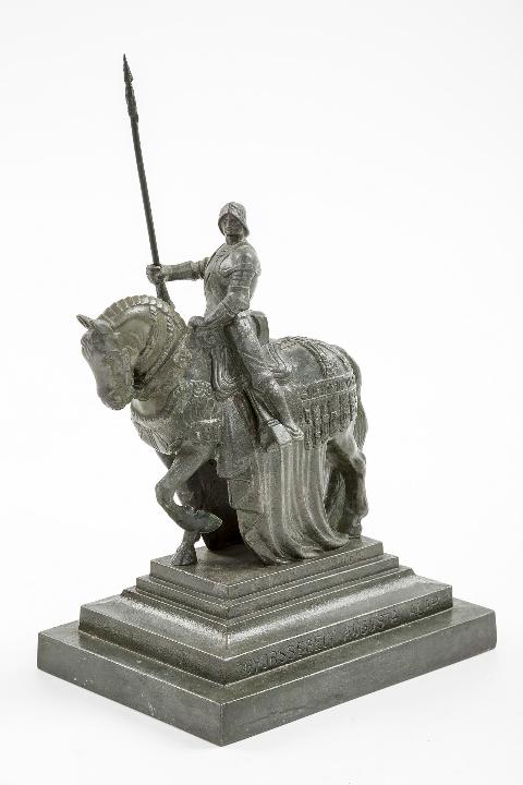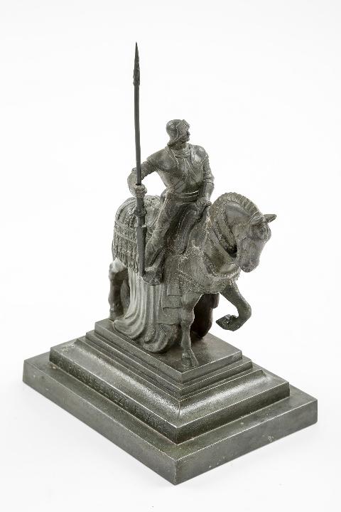 Mátyás-korabeli páncélos vitézt ábrázoló lovas szobor, Sidlo Ferenc szobrászművész által tervezett, 1915 szeptemberében Budapesten, a Deák téren felállított faszobornak a kicsinyített, spiáterből öntött másolata.