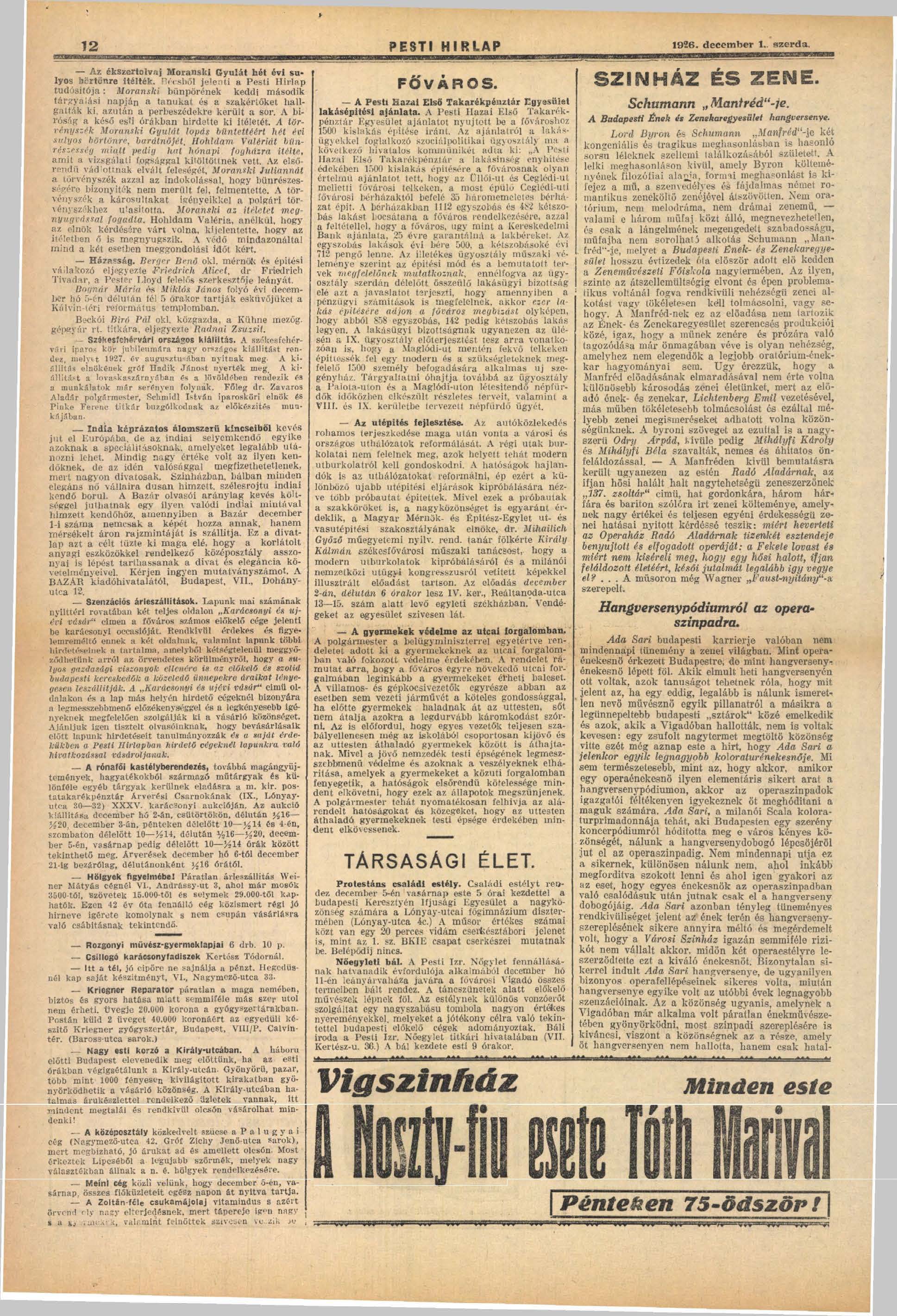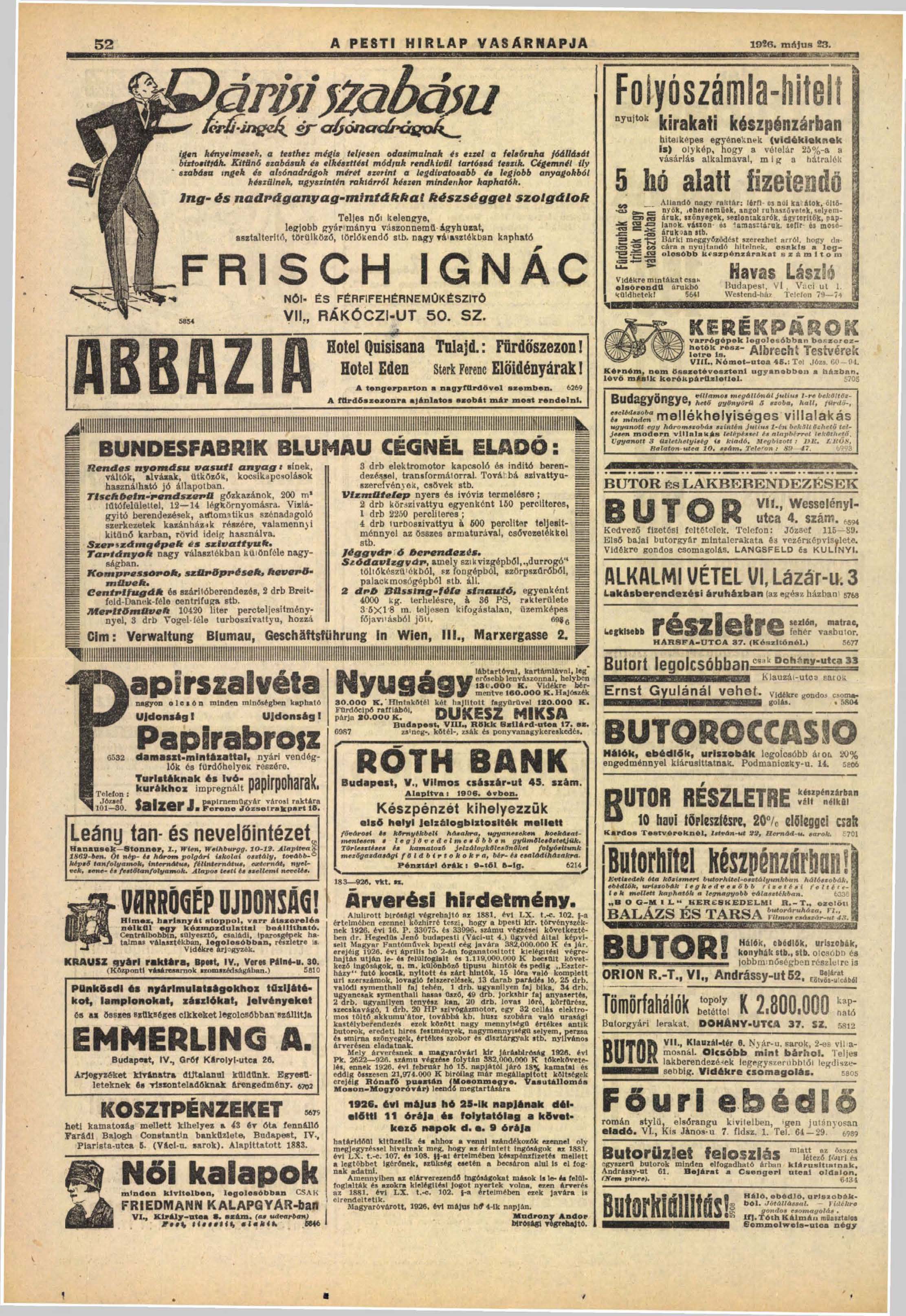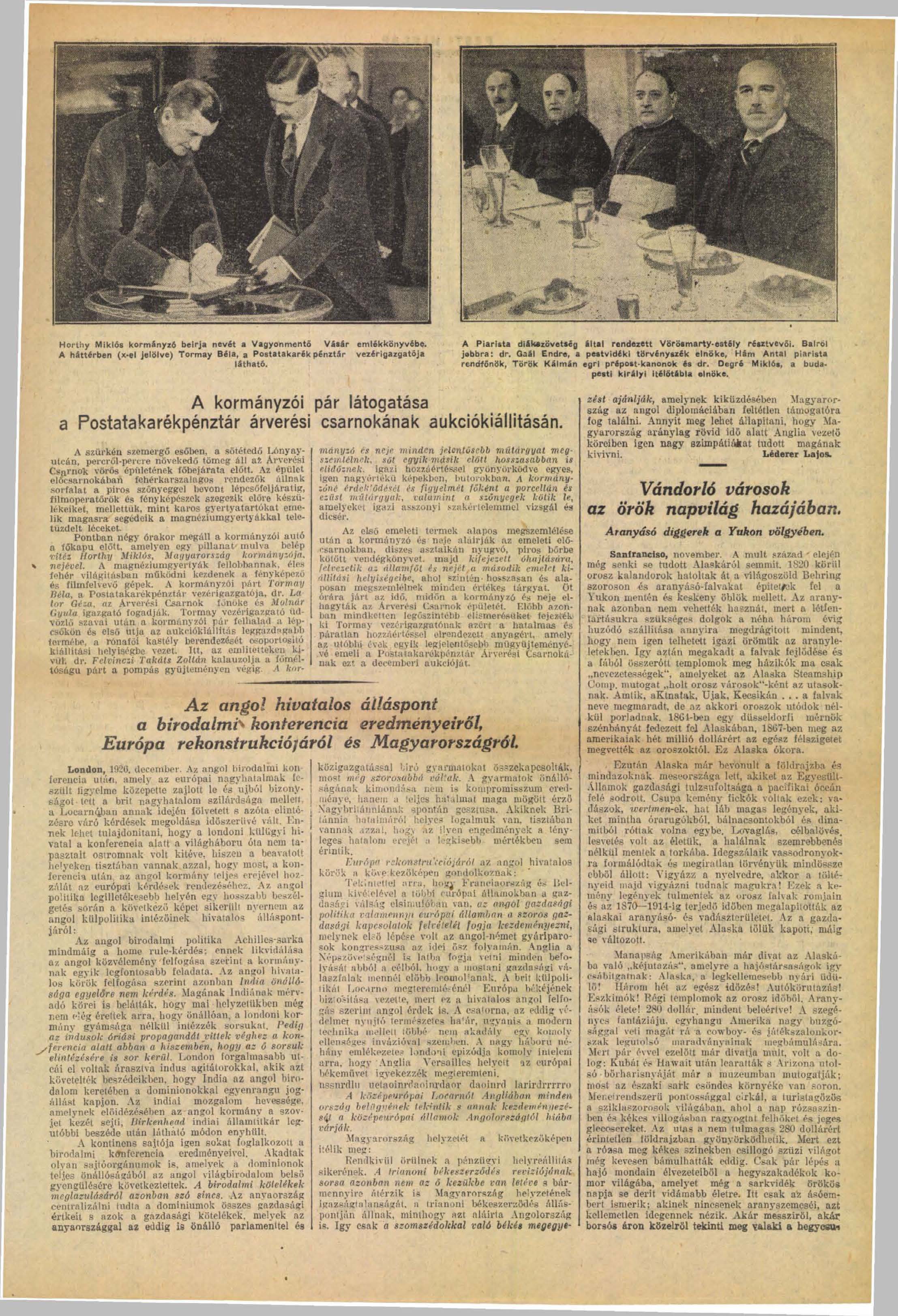 A december 6.-21. közötti árverésről, és az árverést megelőző, december 2.-5. közötti kiállításról a Pesti Hírlap 1926. december 1. szerdai számának 12. oldalán tesz említést.