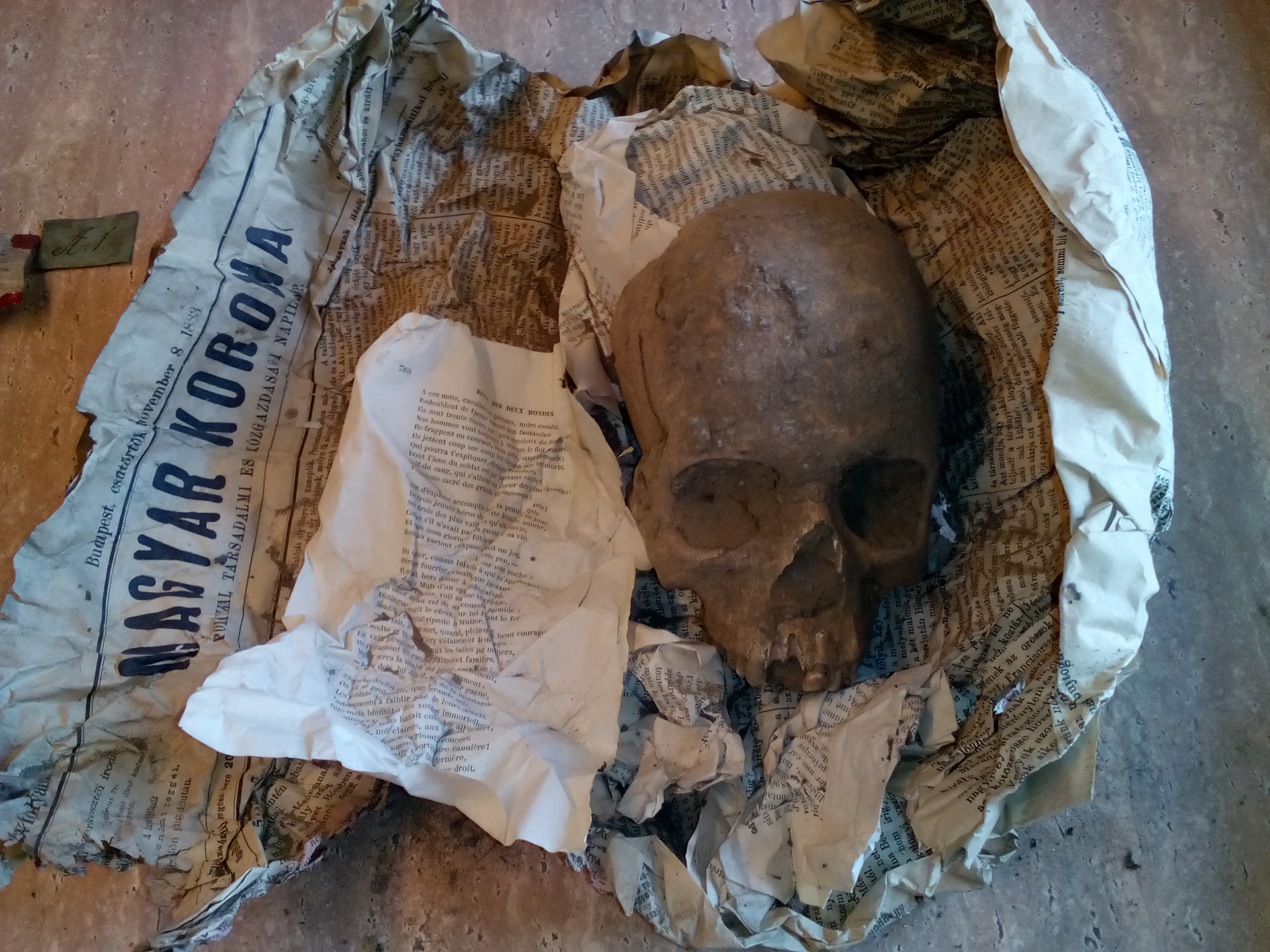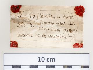 Hónap Műtárgya május   Wosinsky Mór 1883-as lengyeli ásatásának csomagolópapírjai WMMM Újkortörténeti Gyűjtemény, gyarapodási napló száma: 18/2019.   A Magyar Természettudományi Múzeum (MTM) Embertani Tárában 2018 nyarán raktárrendezés során előbukkant három ládára való, régi újságpapírba csomagolt embercsont. Eredetét nem sikerült felkutatni, feltehetően már 1945 előtt a Magyar Nemzeti Múzeum Régészeti Tárában őrizték és onnan örökölte meg az MTM. Makra Szabolcs, az Embertani Tár munkatársa szeptember elején értesített a csomagok előkerüléséről, ugyanis hamar kiderült, hogy a csomagok Wosinsky Mór 1883-as lengyeli ásatásából származnak. A 23 csomag nagy részét kibontották már meghatározás végett, de az utolsó darabok bontásánál magam is részt vettem 2018. szeptember 19-én. A csomagolópapírként szolgáló megmaradt újságokat és a Wosinsky által írt kísérőcetliket intézményünk múzeumtörténeti gyűjteménye megkapta.   Wosinsky Mór római katolikus pap műkedvelő és kezdő régészként gróf Apponyi Sándor lengyeli földbirtokos támogatásával a Lengyel községtől északra, ma Mucsi határába eső ún. Töröksáncon végzett feltárásokat 1882–1888 között. Késő neolit telepobjektumokat, két neolit sírcsoportot, valamint középső, késő bronzkori, kora vaskori és római kori leleteket tárt fel, de leírt kelta és népvándorlás kori tárgyakat is. A késő neolit – kora rézkori leleteket feldolgozó Wosinsky-publikációk alapján ez lett a közel 7000 esztendővel ezelőtt a Kárpát-medence nyugati felét uraló Lengyel-kultúra névadó lelőhelye. A sánc fennsíkjának középső és délkeleti részén két sírcsoportban közel 80 sírt (több, mint 100 csontvázat) tárt fel és írt le alaposan Wosinsky. Nyitottságára és érdeklődésére jellemző, hogy több sírt is kiemelt „in situ” és juttatott el Berlinbe, Bécsbe, Budapestre és később a szekszárdi múzeumba. A régészeti elemzés mellett kisebb antropológiai vizsgálatra is sor került (négy koponyát 1890-ben Rudolf Virchow tanulmányozott), de elvégeztek archeozoológiai és archeobotanikai vizsgálatokat is.   Az erősen poros csomagok hasonlóan néztek ki: korabeli újságokat használtak fel, kísérőcetlivel látták el őket és zsineggel kötötték össze. Többségük embertani anyagot tartalmazott, de állatcsont és régészeti korú kerámia is keveredett az embercsontok közé. A csomagolást minden bizonnyal Wosinsky saját maga végezte el vagy felügyelte. A cédulákon Wosinsky kézírása olvasható, többségüket sarkaikon piros pecsétviasszal erősítették fel, melyekbe pecsétgyűrűt nyomtak „wm” monogrammal, ami az ásatóra utal. Ma már kideríthetetlen, hogy a megtalált csomagokat egyszerre küldték-e el, vagy több alkalommal, de egy kivételével az újságok 1883. szeptember 30. és november 8-a közötti keltezésűek, csupán egy példány datálódik 1884. május 22-re. A szállítmány címzettjéről sem tudunk semmit, csak gyaníthatjuk, hogy talán Török Aurél (1843–1912) egyetemi tanár, akadémikus, antropológus lehetett.   A megmentett újságok a következők. A Magyar Állam című napilap egyházpolitikai újság volt, 1868–1908 között jelent meg. A Magyar Korona 1877–1885 között működő heti-, majd napilap a konzervatív kormánypárti sajtó közé tartozott. A Tolnamegyei Közlöny hetilapként (1873–1918) a megyei közélet iránt érdeklődőket tájékoztatta. Az Egyetértés a függetlenségi párti ellenzék 1874 és 1913 között kiadott napilapja volt. A nagyméretű újságokat Wosinsky támogatójától, gróf Apponyi Sándortól kaphatta, aki ezek szerint lengyeli kastélyába megyei, budapesti, de német és francia napilapokat is járatott. A csomagokat kísérőcédulák felirata hasonlóképp épülnek fel, pl.: „IV/1883 23/4”. A római négyes talán Wosinsky beszámozott kutatóárkára utal, melyet az ásatás évszáma követ. A következő számok talán a csomagszámot jelölik és az összetartozó leletekre utalnak, melynek feloldását a címzett ismerhette. A cetlik szövege – „Ép csontváza papírba tekerve, a fenéktől fölfelé a második, két újság között fekszik”, vagy „IV/1883 23/5 ép csontváza a láda fenekén. Esetleg a fenekén levő comb között található csontocskák is ide tartoznak” – praktikus információkat tartalmaznak. Két papiroson „Lengyeli lelet” megnevezés olvasható. A csontok közül a koponyáknak külön fontosságot tulajdonított Wosinsky, ugyanis egy agykoponyára és állkapocsra is ráírta tussal a fontos tudnivalókat. Az első csomag szövege alapján talán beazonosítható az egyik csontváz. „Ládában az égetett koponyarészek után következik papírba tekerve az ép csontváza” – írta Wosinsky. Az ásató 1885-ös tanulmányában írta le a 8. számú jelenséget: „egy másik érdekes temetkezési helyre az előbbeniek szomszédságában akadtunk, mely látszatra egymás fölött kétféle temetkezési módról tett tanuságot. Ugyanis a 33 ctméternyi fekete korhany-réteg fenekén négy koponya volt, egyéb csont nélkül, a koponya több részén az égetésnek fekete szenesedési nyoma látszott. Valamivel tovább, 30 ctm.-rel mélyebben, kemény, sötétbarna korhanyrétegben, hamu és széndarabocskákkal egy nagyobb tömeget találtunk, mely égetett koponya-részekből mintha összeforrasztott volna; egyéb testrészekből égetett csontocska nagyon kevés maradt meg…” Az égetési nyomokkal teli jelenség alatt zsugorított temetkezést tártak fel. Feltehetően ezen alsóbb sír csontjai lehetnek a kibontott egyes számú csomagban.   A 2018-ban felfedezett csomagok 135 esztendőn keresztül várták feldolgozásukat. A lengyeli lelőhelyről kevés antropológiai anyag maradt meg. A