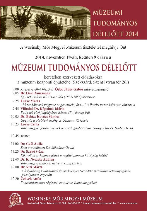 Minden kedves érdeklődőt várunk tisztelettel múzeumunk éves tudományos beszámolójára!