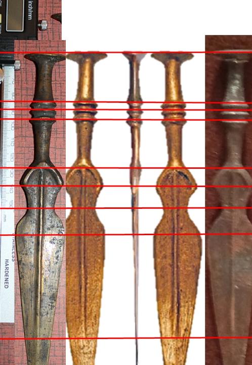 Mérete: hosszúsága 22,3 cm, legnagyobb pengeszélessége: 3,1 cm