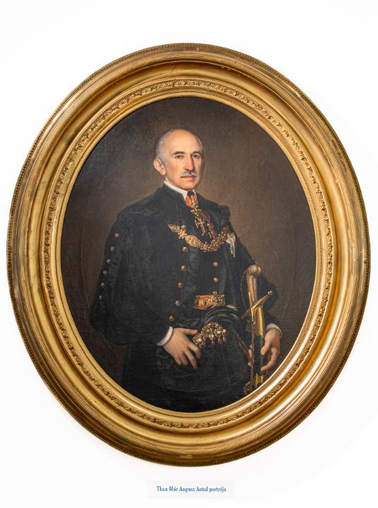 Than Mór (1828–1899) festőművész eredetileg jogásznak készült, de már egyetemi évei alatt Barabás Miklósnál rajzolni tanult. 1848-ban Görgey táborában hadifestőként örökítette meg az eseményeket. 1851-től Bécsben a Képzőművészeti Akadémián, majd Karl Rahl magániskolájában tanult, ezt követően Párizsban képezte magát. Itáliai tanulmányútja után, 1860-ban tért haza. A történelmi kompozíciók mellett életképeket, oltárképeket és portrékat is alkotott. Az 1860-as évek közepétől Lotz Károllyal együtt a Pesti Vigadó és a Nemzeti Múzeum nagyszabású freskóit festette meg. Reprezentatív arcképmegrendelésekkel is elhalmozták: Deák Ferenc (1867), Batthyány Lajos (1868) és Nyáry Pál (1871) egészalakos portréit készítette el. Augusz Antal háromnegyed alakos képe is a jelentős megbízások közé tartozik. A sötét háttérből a fej megvilágítása emeli ki a fekete díszmagyaros férfi portréját. A nyílt, határozott tekintetű férfiarc szinte fotografikus hűségű ábrázolása, ami a ruha, az ékszerek és kitüntetések aprólékos megjelenítésével párosul. A festmény Augusz Antal hatvanadik születésnapja alkalmával készült.