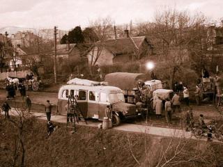 1960. decemberében Szekszárd első számú szenzációja volt a filmforgatás. Az első felvételeket a régi megyeháza udvarán készítették, erről a forgatási napról az MTVA archívum fotótárában megtaláljuk Bojár Sándor fényképeit. Jantner János is készített felvételeket a filmforgatáson, amelyek 1960. decemberében megjelentek a Tolna Megyei Népújságban, Letenyei György tudósításával együtt. A forgatás izgalmas látványosságot jelentett a város lakosainak, akik a jelenetet figyelve egy csapásra visszarepülhettek az időben, 1956. márciusába, a jeges árvíz napjaiba. A Keselyűsi úton összetorlódott szekerek, autók látványa és hatalmas felfordulás fogadta az arra tévedőket, de a batyukat cipelő, állatokat terelő emberek most nem az árvíz elől menekülők voltak, csupán színészek a készülő filmben, a felfordulás pedig egy tökéletesen megszervezett munka, amelyet a rendező precízen irányított. Az időjárás nem mindig kedvezett, ezért előfordult, hogy félbe kellett szakítani a forgatást, majd nem sokkal később másik, alkalmasabb helyszínen folytatni, de a munka nem állhatott meg.