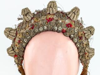 A hónap műtárgyaként kiállított nagybársony használatáról az 1880-as évek óta vannak írott források. Előtte a tülköspárta díszítette a fiatal lányok fejét, ami egyben a menyasszonyi koszorújuk is volt. Valószínűleg a sváb (katolikus) lányok mirtuszkoszorúinak a hatására terjedt el az újfajta párta a Sárközben, amit a meglévő anyagok felhasználásával a települések és a fiatalok a saját ízlésükre alakítottak át. Őcsényben és Sárpilisen a nagybársony terjedt el mint kedvelt forma.