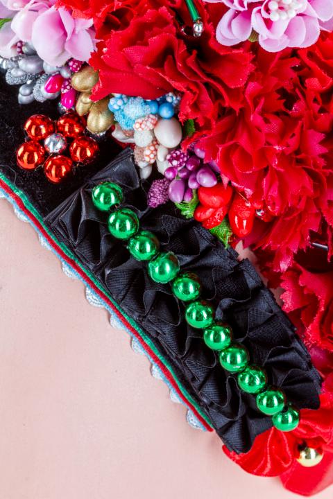A párta harmadik része a nagybársony, melyről az egész fejdíszt is elnevezték. Erre kerülnek a piros színű virágok négy sorban, amiből mintegy 60 darabra van szükség. Közöttük kapnak helyet a fej két oldalán szimmetrikusan elhelyezkedő színes virágok (két lila, hét rózsaszín), a kása- és szalmagyöngyből fűzött levelek és szirmok, a ruhaanyagból készült bogyók (két kék). A hátsó virágsorában kiemelkedik három, aranyszálakból sodort rezgő, mellettük piros és sárga zabszemgyöngy, középen egy gyöngyvirággal.